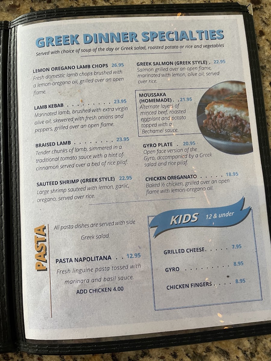 Boneless breast of chicken grilled over an open flame, served with onions, tomatoes and tzatziki sauce, wrapped in grilled pita bread.