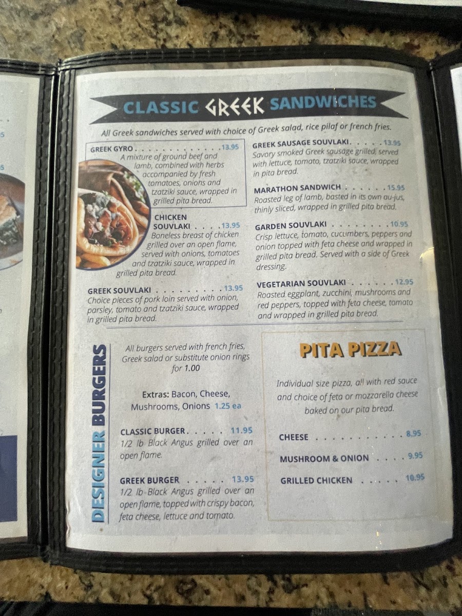 Savory smoked Greek sausage grilled, served with lettuce, tomato, tzatziki sauce, wrapped in pita bread.